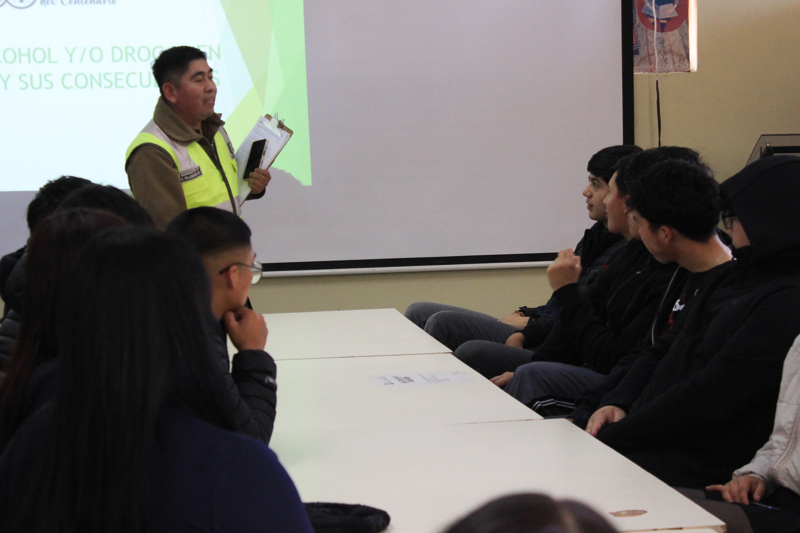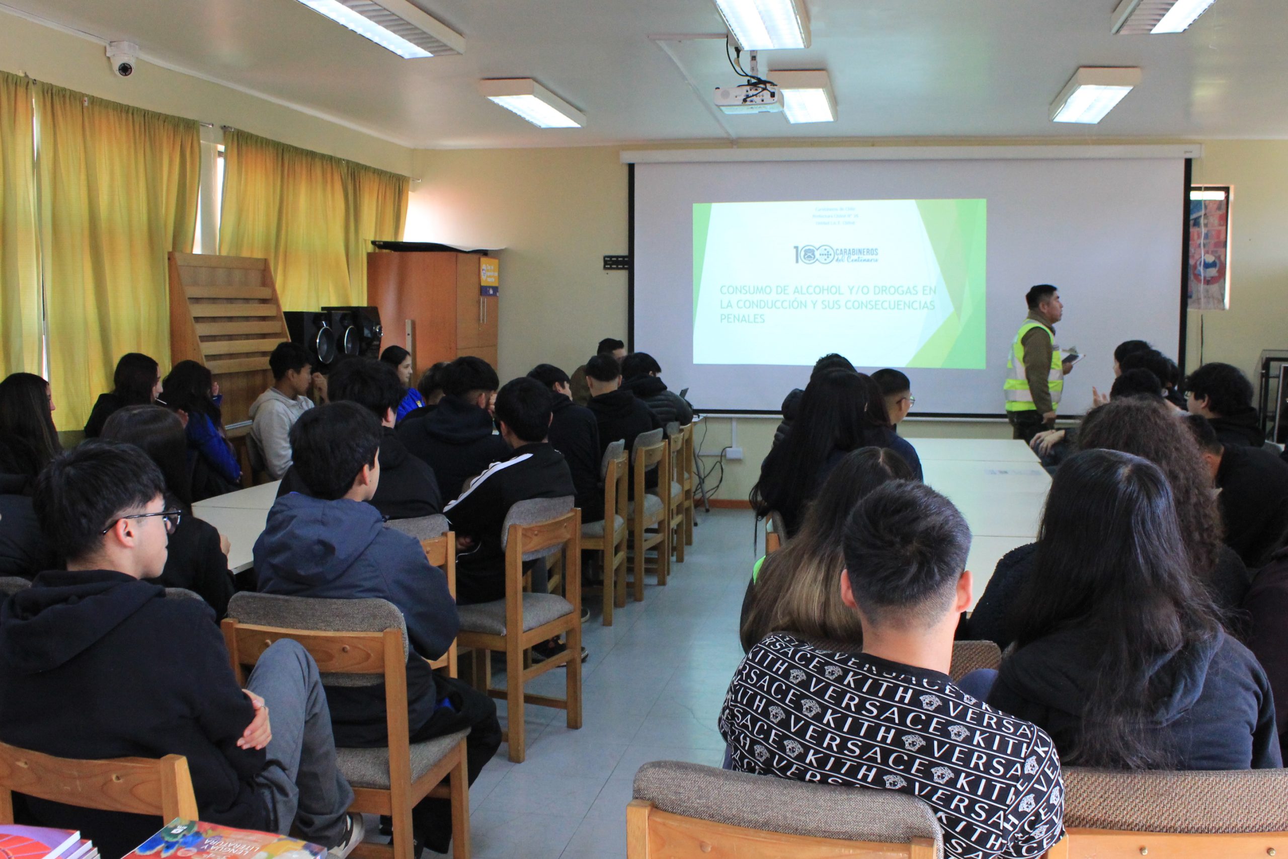 La SIAT de Carabineros de Chiloé visitó nuestro establecimiento para dialogar con los estudiantes de 3° Administración y 4° Construcciones Metálicas sobre el consumo de alcohol y drogas en la conducción y sus consecuencias legales.